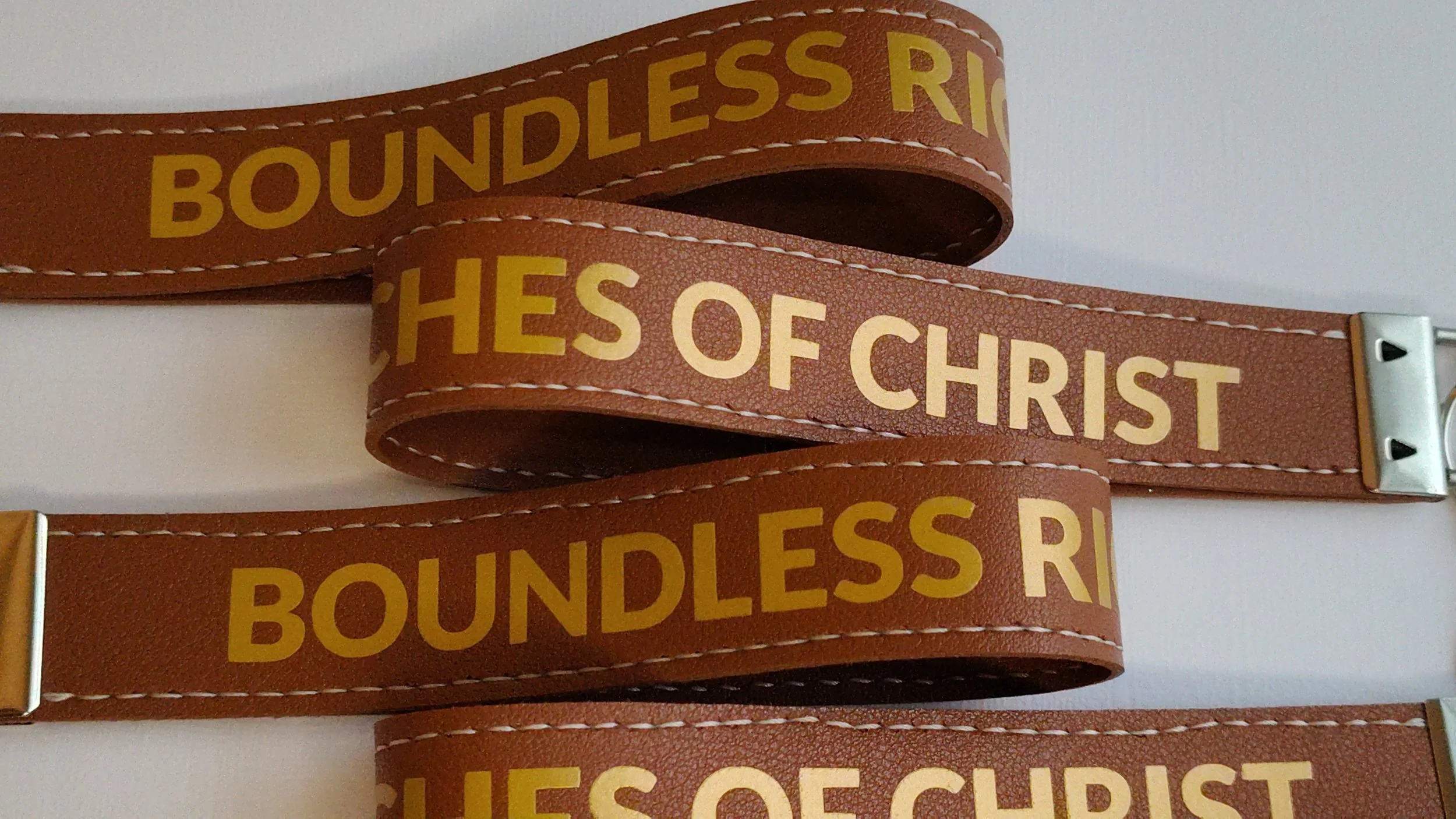 Accesories Categories: All Accesories T-Shirts Singles Packs Sticker Sheets Cards Envelopes Journals Gift Cards All / Accesories Boundless Riches Of Christ Leather Keyfob $6.00